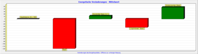 In der Graphik „Energiehaushalt“ werden die gemessenen Werte mit statistischen Daten verglichen. Die sogenannte „Nulllinie“ stellt die idealen Werte für die Person aufgrund des Geschlechts und Alters dar. Die Balken zeigen den prozentualen Energiemangel bzw. Energieüberschuss.