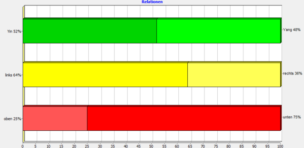 In der Graphik „Relationen“ wird die relative Beurteilung von Meridiangruppen dargestellt. Die Meridiane sind hierzu in verschiedene Gruppen eingeteilt:
